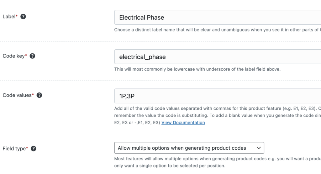For example, let us say you want to use electrical phase in your part numbers you might define each element as follows: